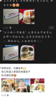 立冬吃饺子是中华民族的传统习俗,蕴含着团圆温暖的美好寓意。公共管理与人文学院一直以来重视对家庭经济困难学生的成长关怀,此次结合立冬节气开展的关爱活动,既是对传统民俗文化的传承,更是学院“资助育人、暖心育人”理念的生动实践。为确保活动精准覆盖、便捷高效,学院学生工作办公室前期通过精准摸排,梳理出家庭经济困难学生名单,提前定制了带有学院标识的饺子兑换券,并逐一发放到学生手中,同时详细告知兑换时间、地点及相关注意事项。