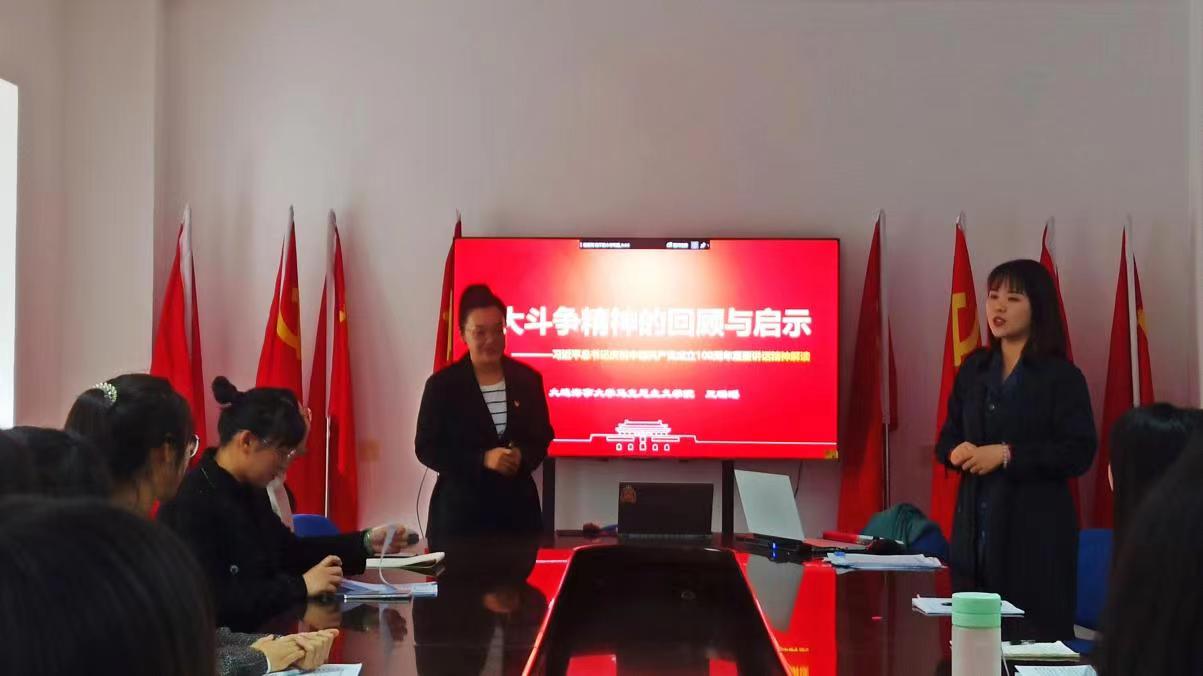 本次党课学习由来自马克思主义学院的博士生王璐瑶担任党课主讲人,帮助研究生党员们深入解读习近平总书记庆祝中国共产党成立100周年重要讲话精神,回顾和梳理伟大斗争精神对中共党员的深刻启示。