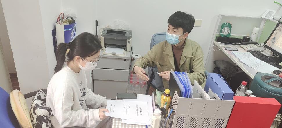 2、研究生中队兼职指导员王奕童,深入学生宿舍,掌握学生就业创业政策需求后,高效反馈。