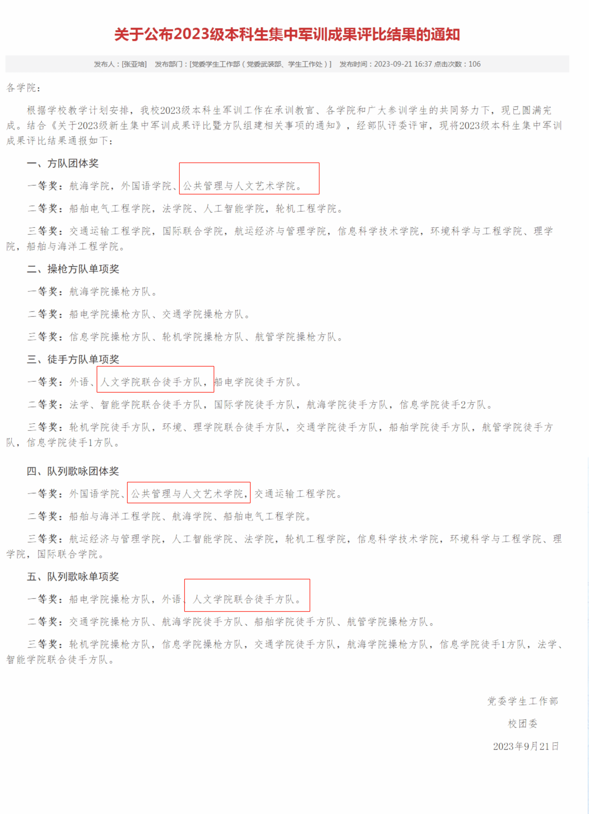 创历史最好成绩|公共管理与人文艺术学院勇夺2023年新生军训四项一等奖