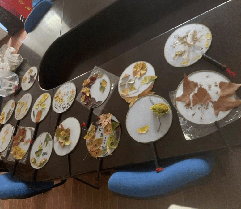 实践过程:“一年好景君须记,最是橙黄橘绿时”,正值金秋,校园中的树叶逐渐变黄、飘落,为校园披上了一层“黄金衣”。全体同学在校园各处寻找落叶,随后在有序的准备中积极开展实践活动,将劳动和艺术紧密结合,创作了一幅幅佳作。
