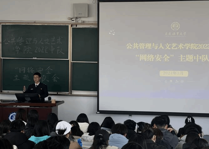 为进一步加强学生安全教育,增强学生网络安全意识,推进中队学生教育工作高质量发展,3月13日,公共管理与人文艺术学院2022中队在百川楼102室召开中队会,大会以“网络安全”为主题,中队兼职指导员聂方晨主持,全体学生参加。