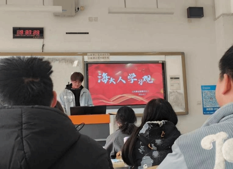 为引导海大学子明确新时代海大人的治学境界和治学追求,进一步理解掌握“海大人学习观”的理论逻辑和实践路径,公共管理与人文艺术学院2022中队各班于2024年3月末召开“海大人学习观”主题班会。会议由各班班长主持,全体学生参加。