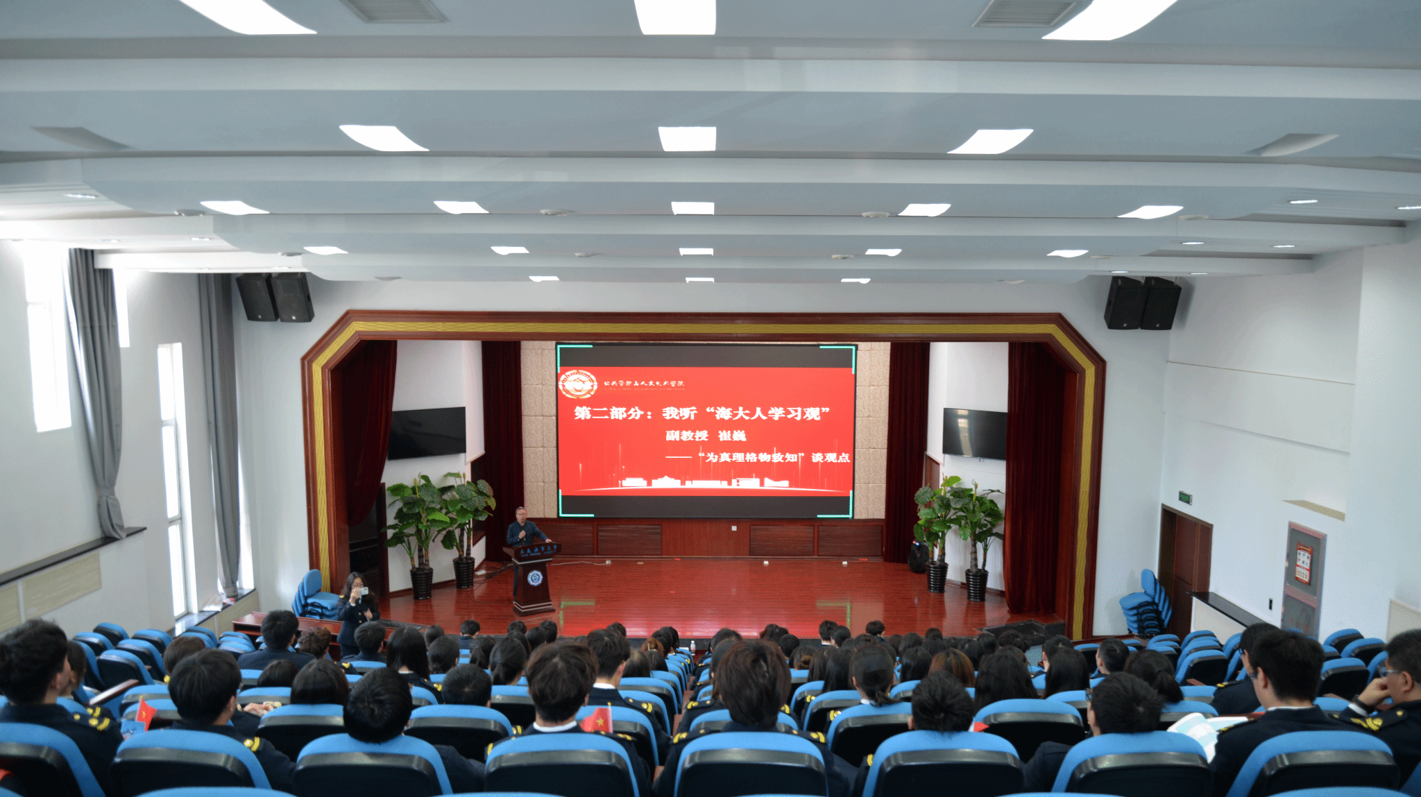 为全面学习贯彻“海大人学习观”,帮助学生深刻理解“海大人学习观”内涵,深挖学习动力,明确新时代海大人治学追求与治学境界,公共管理与人文艺术学院2022中队于4月24日在敏学楼报告厅以“泉溪汇海,博学人文”为主题召开“海大人学习观”班会。学院教师代表、专兼职学生工作干部、班主任代表、优秀校友、校“小海马”宣讲团成员及四个班级同学于线下参加班会,各班同学的家长在线上同步参会。会议由中队指导员焦兴华主持。