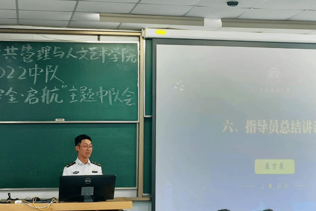 会议最后,中队兼职指导员聂方晨总结讲话。他从纪律、规划和安全三个方面进行总结。首先,指出纪律是成长环境的一部分,要自觉遵守纪律、融入大环境,成为环境的主人,而不是奴隶。其次,强调做好规划,呼吁中队同学要充分利用图书馆等学习资源增强自身的竞争力。中队会当天恰逢国家网络安全宣传周电信日,指导员强调要了解高发诈骗案例,学习反诈防诈知识,守护好自己的“钱袋子”。中秋假期临近,指导员提醒同学们要注意人身、交通、财产安全,防火防电、防诈骗、防溺水、防传染病、食品卫生等,有效地增强自我保护意识和安全防范意识。最后,聂方晨强调,中队全体同学要时刻记得自己生在何方、长在何处,心中要始终怀揣一抹中国红,通过大学的锤炼和磨炼,努力成为国家的守护者,而不是旁观者或反对者。