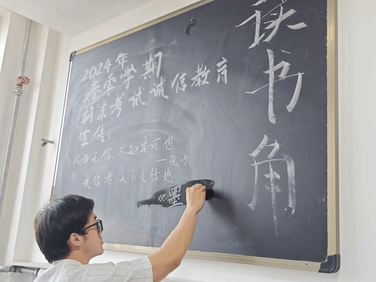学院于学生寝室内的学习角进行诚信标语宣传,通过对寝室环境的改造,深化诚信教育力度,打造诚信考试氛围,将诚信之风融入学生校园生活的方方面面。