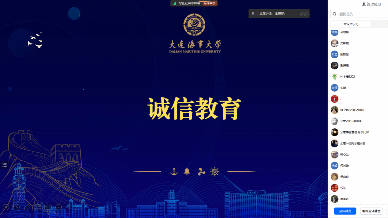 各中队分别以班会的形式召开了有关诚信考试的主题会议,通过会议带领学生深化诚信考试理念,铸牢诚信学习信念。会上,各班级深入学习《大连海事大学学生违纪处分实施细则(学习管理类)》《大连海事大学考试工作管理规定》《大连海事大学考生守则》等文件内容,引导学生树立规则意识,底线意识,确保学生遵守考风考纪。