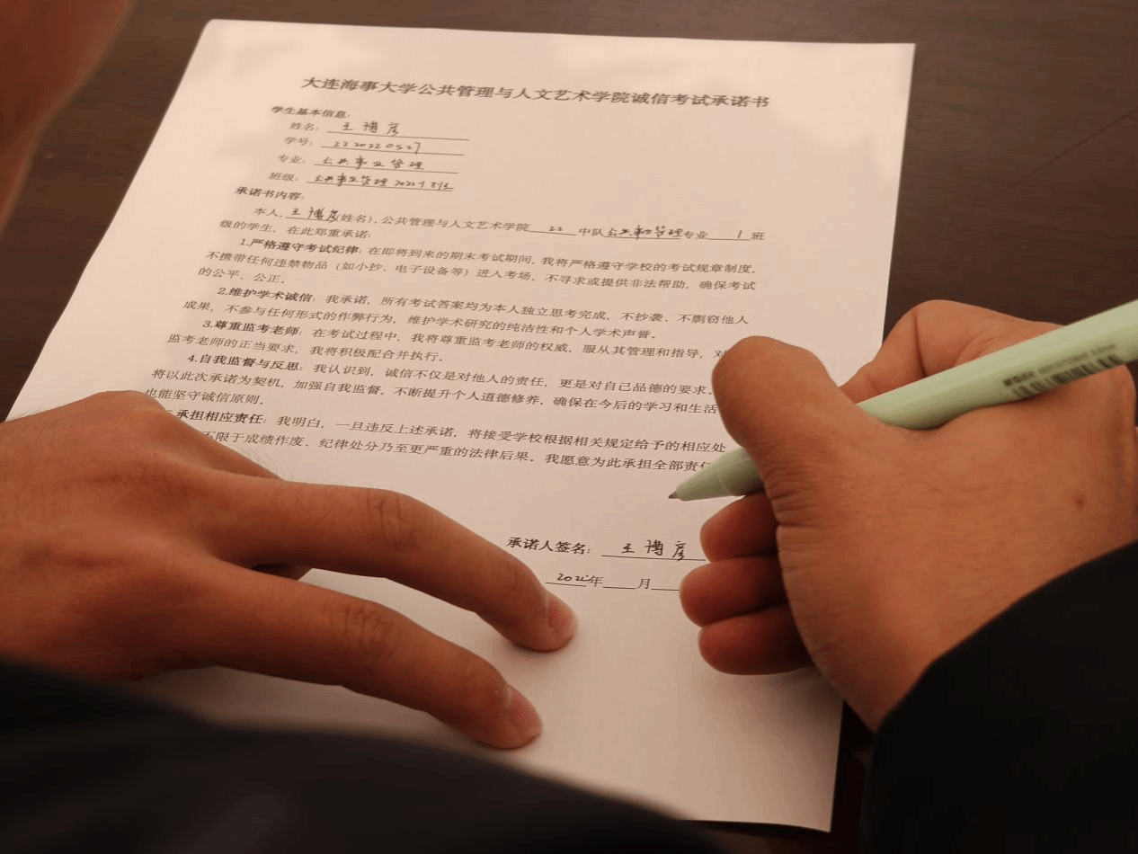 为了进一步严肃考风考纪,构建诚信校园,公共管理与人文艺术学院于2024年秋季学期开展“诚信教育”系列主题活动,教育引导人文学子端正考风、诚信应考。
