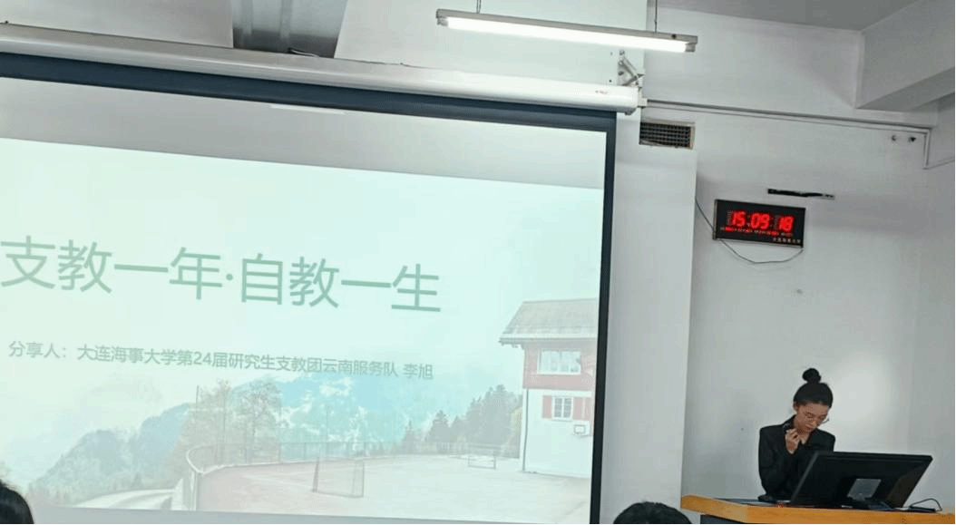 会议伊始,中队邀请到大连海事大学第24届研究生支教团成员李旭做“支教保研”专题分享。李旭根据自己的亲身经历,介绍了我校支教保研的相关政策和流程,和人文学子进行了真实、详尽的支教保研的交流。她还和我们生动的讲述了她在支教过程中与支教地学生的感人故事和通过支教获得的种种收获,她说“这世界上的理想主义分为两种,一种是我实现了我的理想,另一种是理想通过我得以实现。”此次分享和交流,让22中队的同学更深入的了解到“支教保研”政策,为未来发展增加一条可选择的道路。在交流结束时,李旭提到了我校研支团的口号——“用一年不长的时间,做一件终身难忘的事”,这句话也引起了22中队同学对自己人生意义的深入思考。