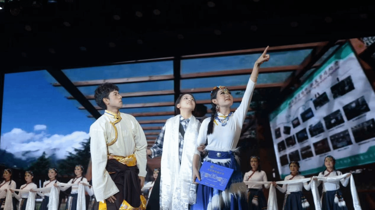 比赛当天,舞台上的大家光芒四射。队员们身着精心设计的服装,以饱满的精神状态和自信的笑容迎接挑战。音乐响起,队员们迅速进入状态,动作整齐划一,情感真挚动人。从阿旺尼玛初见支教老师时的羞涩与好奇,到在老师教导下的成长与蜕变,再到分别时的不舍与感激,每一个情节都被演绎得淋漓尽致。观众被她们的表演深深打动,现场不时响起热烈掌声。