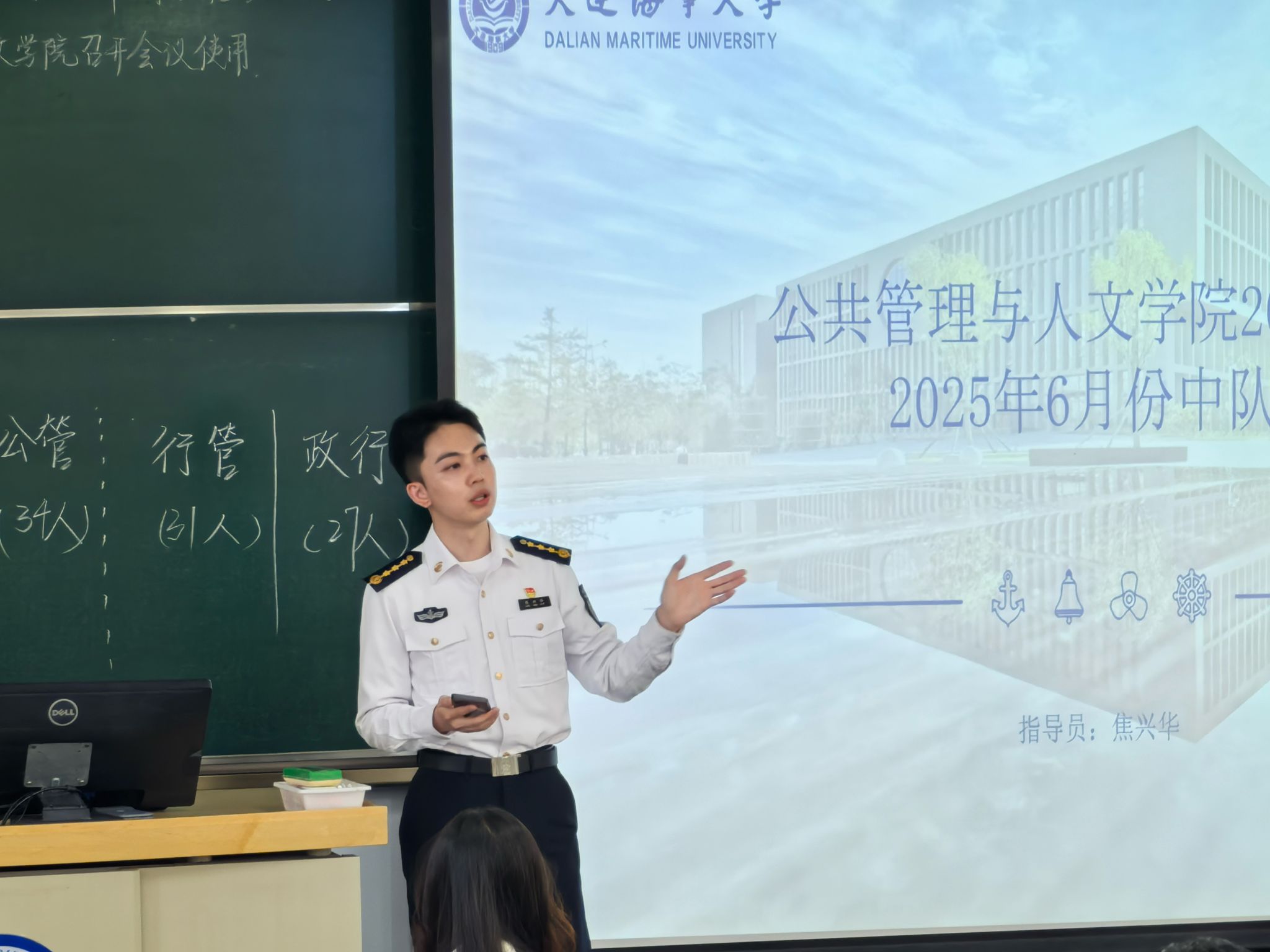 2025年6月4日,公共管理与人文学院2023中队在百川楼203召开6月主题中队会,会议由指导员焦兴华主持,中队全体学生参加。