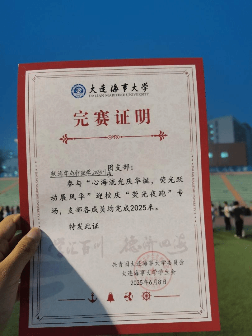 在庆祝中国高等航海教育暨大连海事大学建校116周年的热烈氛围中,一场以“青春之名”的星光盛宴在校内绚烂启幕。6月8日,公共管理与人文学院2023中队团总支积极响应校团委号召,组织4个团支部参与“迎校庆”荧光夜跑专场活动,用跃动的步伐与闪耀的荧光,为海大献上最炽热的生日礼赞。
