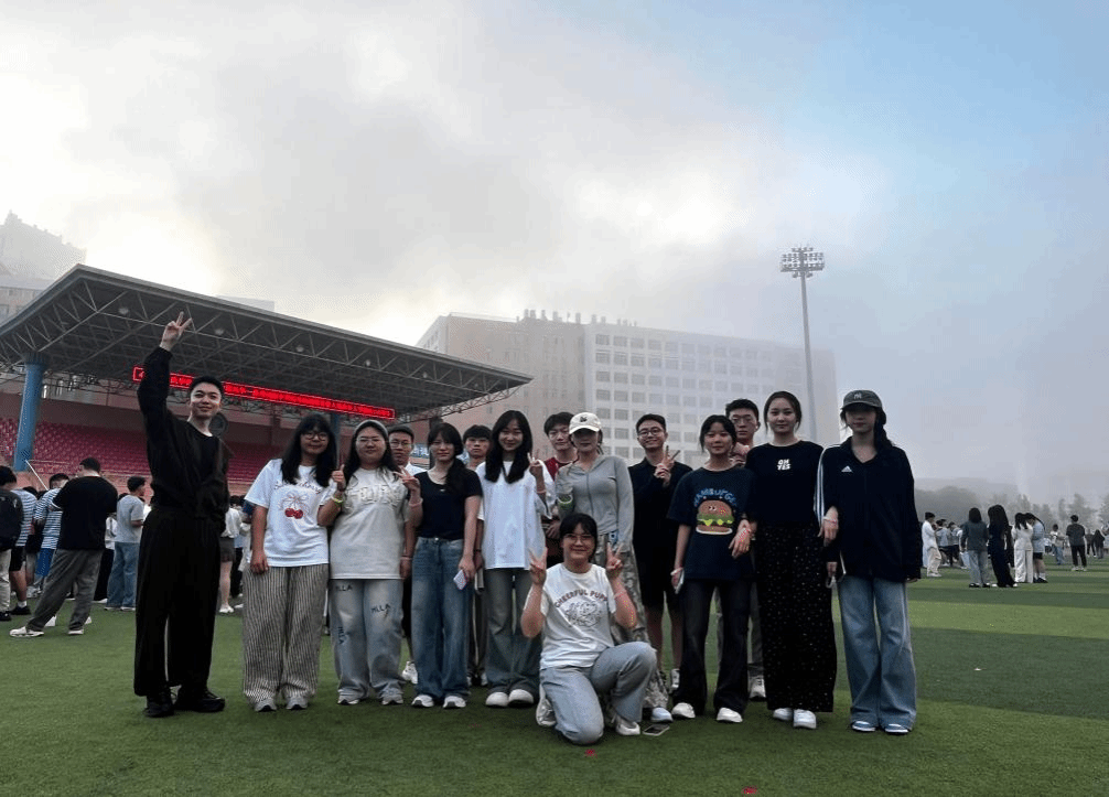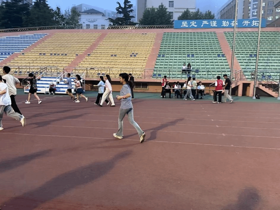 活动现场,动感音乐点燃氛围,同学们在团支书引导下有序跟随领队舒展肢体、热身蓄力。跃动的身影、闪烁的笑眼,如待发的箭矢般蓄满张力,将“青春活力”与“校庆热忱”化作扑面而来的蓬勃气息。