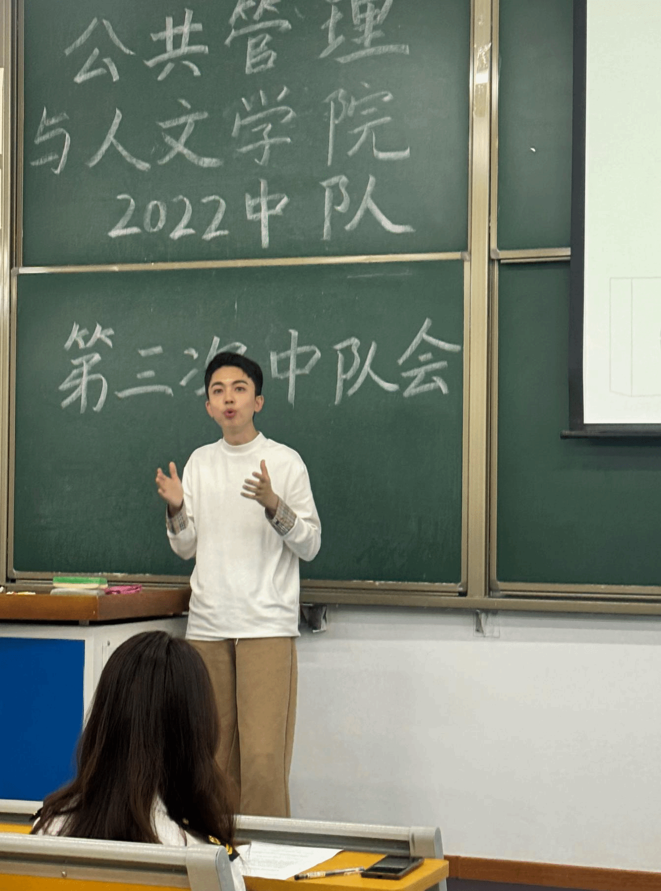 2025年6月20日,公共管理与人文学院2022中队在学汇楼107教室6月主题中队会。会议由指导员焦兴华主持,中队兼职指导员李佳熹、中队全体同学参会。