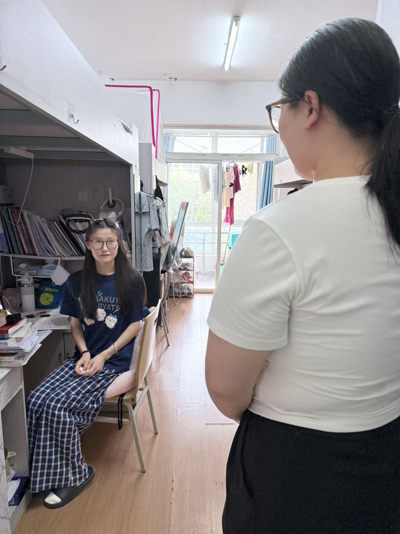 各中队积极响应,指导员成立走访小组深入学生宿舍。一方面重点排查宿舍用电、消防等安全隐患,强调防火防盗及暑期出行安全注意事项,筑牢安全底线;另一方面,了解学生的暑期学习生活安排与具体需求,鼓励学生合理规划时间、提升自我。走访中,针对留校学生的不同情况,指导员们给予了针对性关怀:对留校复习备考的学生,重点关注其学习进度与心理状态,鼓励劳逸结合;对在外参与社会实践的学生,则通过线上方式保持联络,叮嘱其遵守单位纪律、注意人身财产安全并认真完成实践任务。