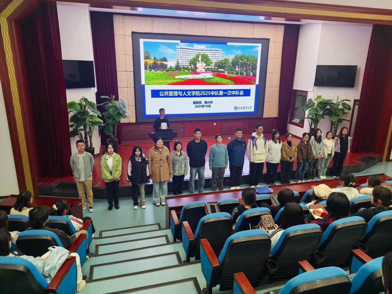 青年如初春、如朝日,如百卉之萌动,如利刃之新发于硎。10月8日晚,公共管理与人文学院2025中队在敏学楼报告厅召开新学期第一次中队会,旨在传承海大军训拼搏的精神,在未来的学习及生活中铆足干劲,以崭新姿态迎接即将到来的大学生活。会议由中队指导员焦兴华主持,各班指导员助理及中队全体学生参加。