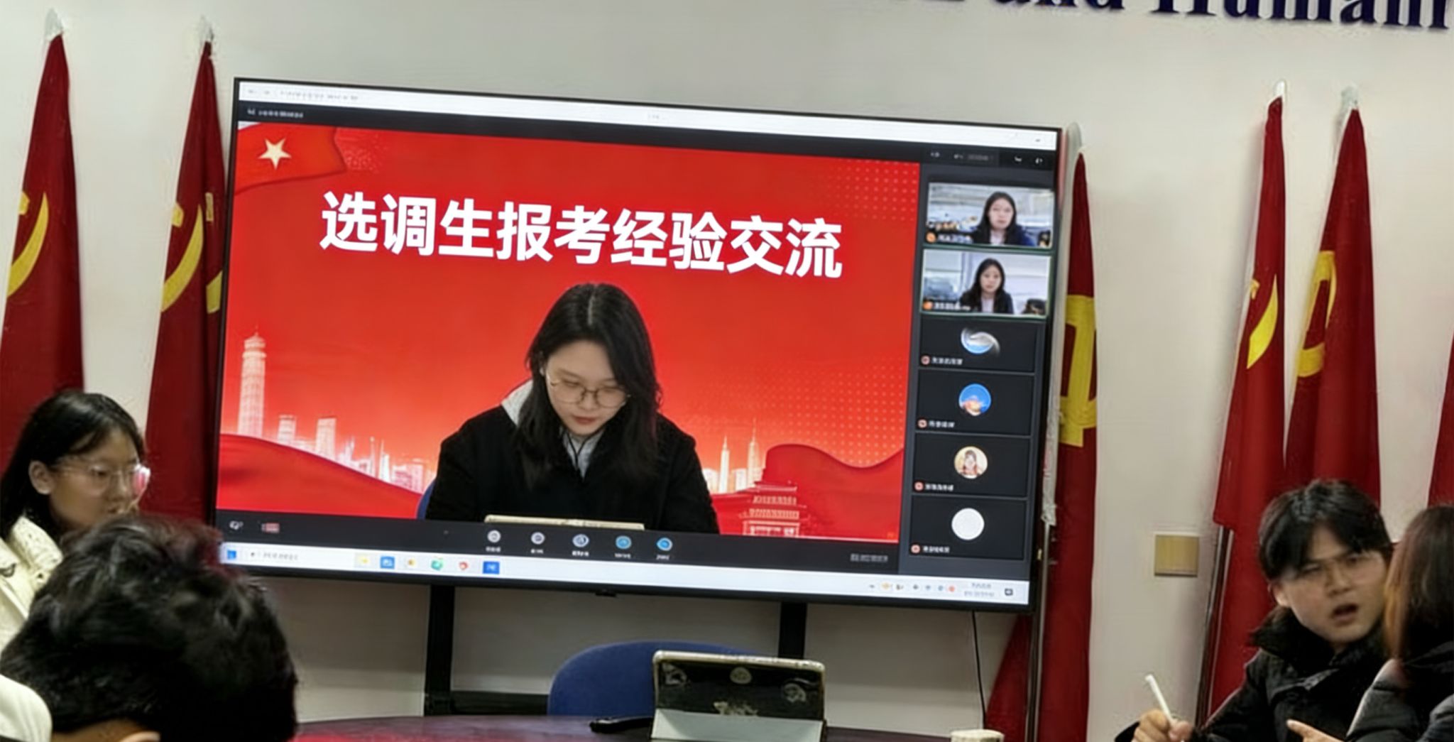 活动伊始,邵丽娜结合国家基层人才政策导向,强调了选调生工作对于服务国家发展、实现个人价值的重要意义;郑晟则围绕选调生招录的报考条件、报名流程、考试内容、资格审查等核心内容进行逐条解读,重点对比了不同省份选调生政策的差异,针对公共管理与人文学院专业适配的基层岗位进行精准分析;同时,杨箫玉通过线上连线的方式,分享基层工作的成长感悟与职业发展前景。活动现场还设置了政策咨询专区,为同学们提供个性化报考建议,帮助大家扫清政策认知盲区,坚定投身基层的职业选择。