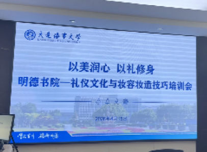 为深化美育实践教育,提升学子形象管理能力与综合素养,明德书院于4月15日在管理楼418成功举办礼仪文化与妆容妆造技巧培训会。本次活动特邀航空服务与礼仪专家肖茹月老师主讲,吸引50余名师生到场参与,在实操与互动中感受礼仪之美、涵养内在气质。
